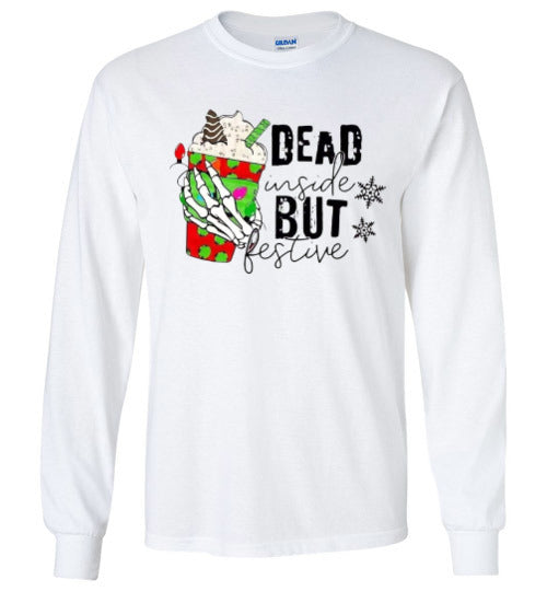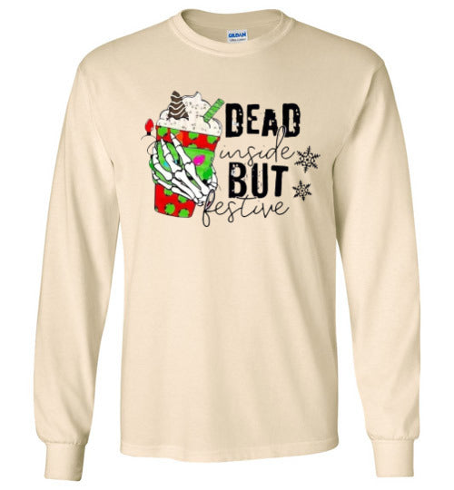 Dead Inside But Festive Holiday Long Sleeve Graphic Tee Shirt Top