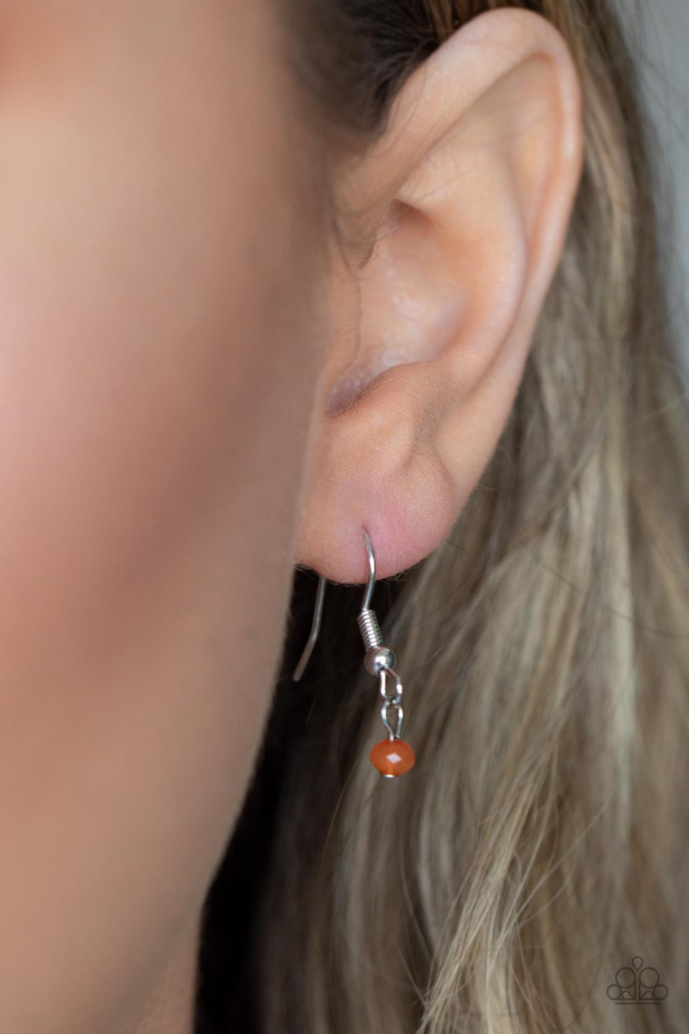 One side of a lengthened silver chain is dotted in dainty orange crystal-like beads as it gives way to an oversized leaf pendant embossed in lifelike textures for a seasonal finish. Features an adjustable clasp closure.