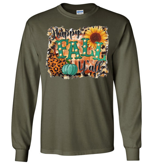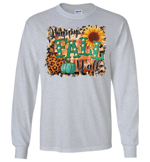 Happy Fall Y'all Long Sleeve Graphic Print Tee Shirt Top