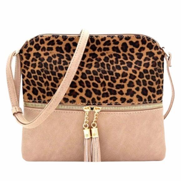 Leopard Print Front Pocket Cross Body Taupe Bag