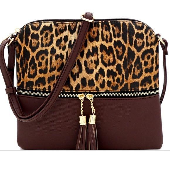 Leopard Print Tassel Front Pocket Cross Body Bag