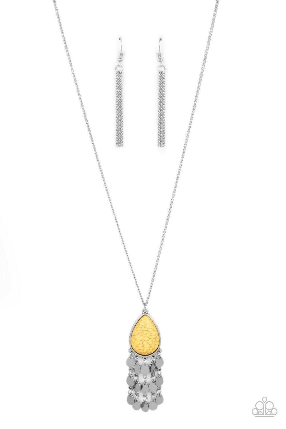 Musically Mojave - Yellow Necklace Earring Set Paparazzi Jewelry Accessories 3252