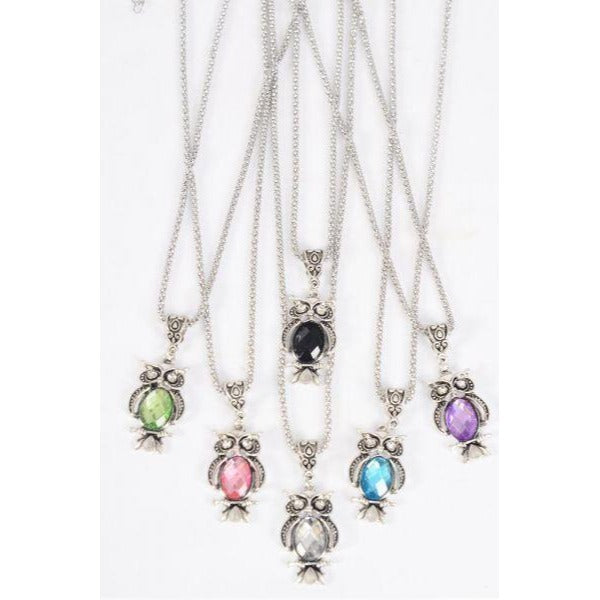 Owl Glass Diamond Cut Silver Chain Necklace Jewelry 878
