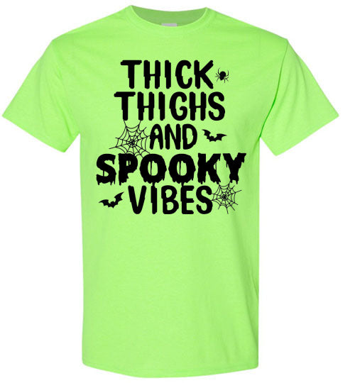Thick Thighs and Spooky Vibes Halloween Graphic Tee Shirt Top