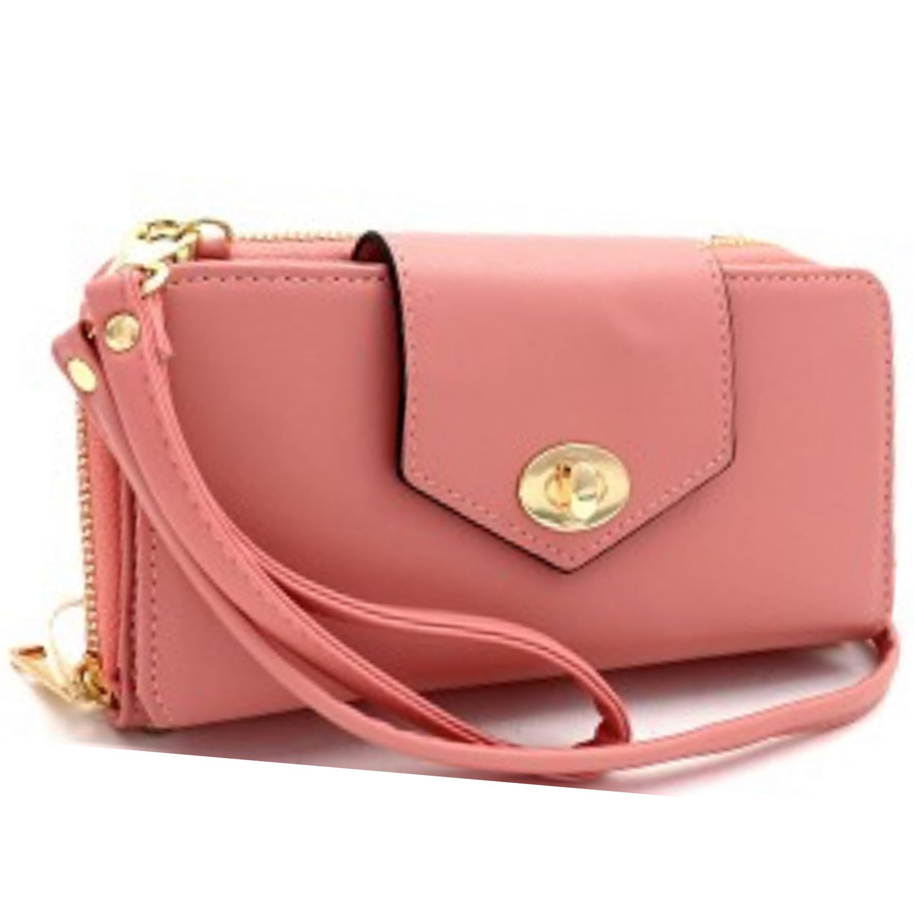 Versatile Cellphone Compartment Wallet Cross Body Pink