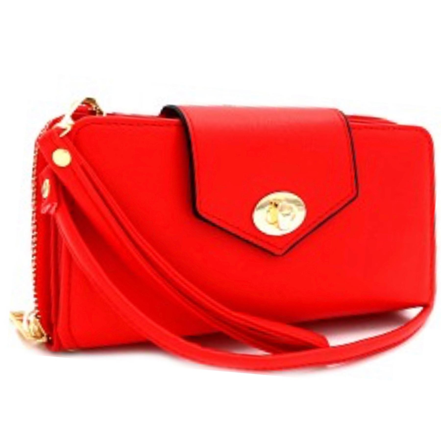 Versatile Cellphone Compartment Wallet Cross Body Red