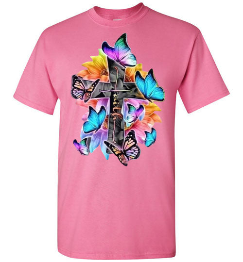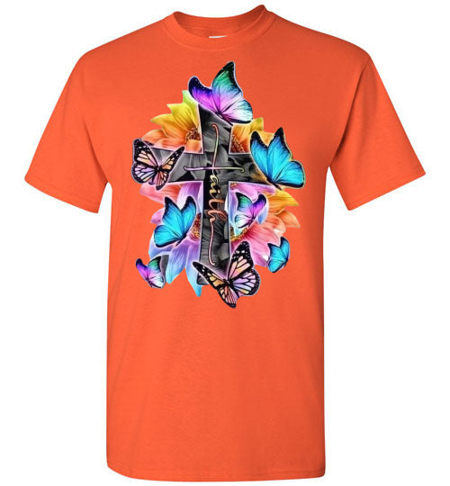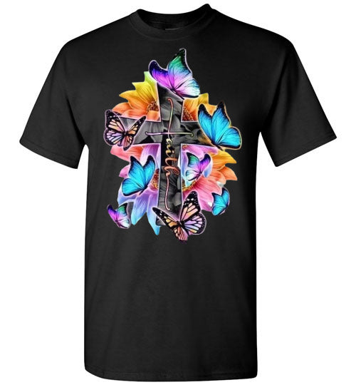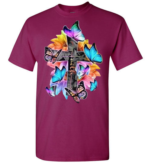 Faith Cross Butterfly Tee Shirt Top T-Shirt
