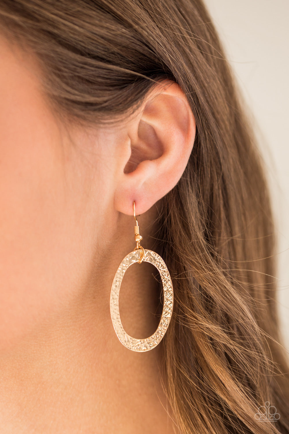 Delicately hammered in shimmery textures, two rows of glistening gold hoops layer down the chest for a sleek look. A lobster clasp hangs from the bottom of the design to allow a name badge or other item to be attached. Features an adjustable clasp closure.
