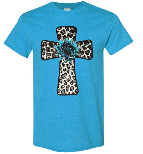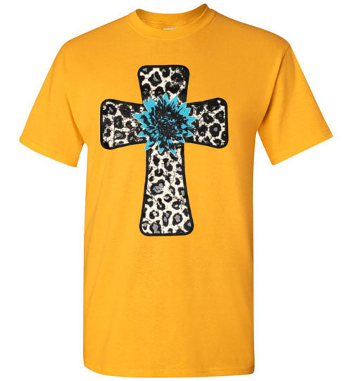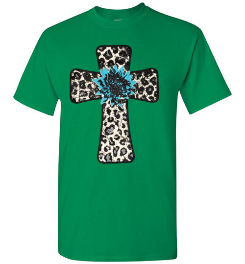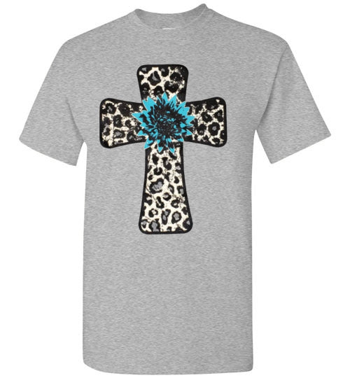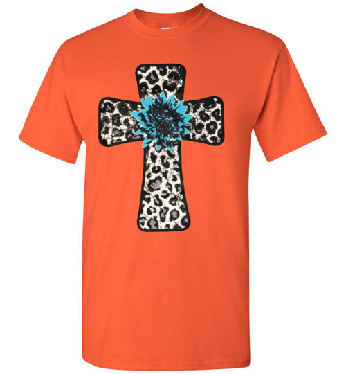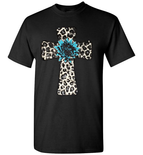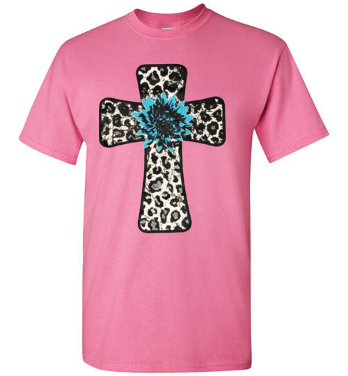 Leopard Cross Christian Cross Tee Shirt Top T-Shirt