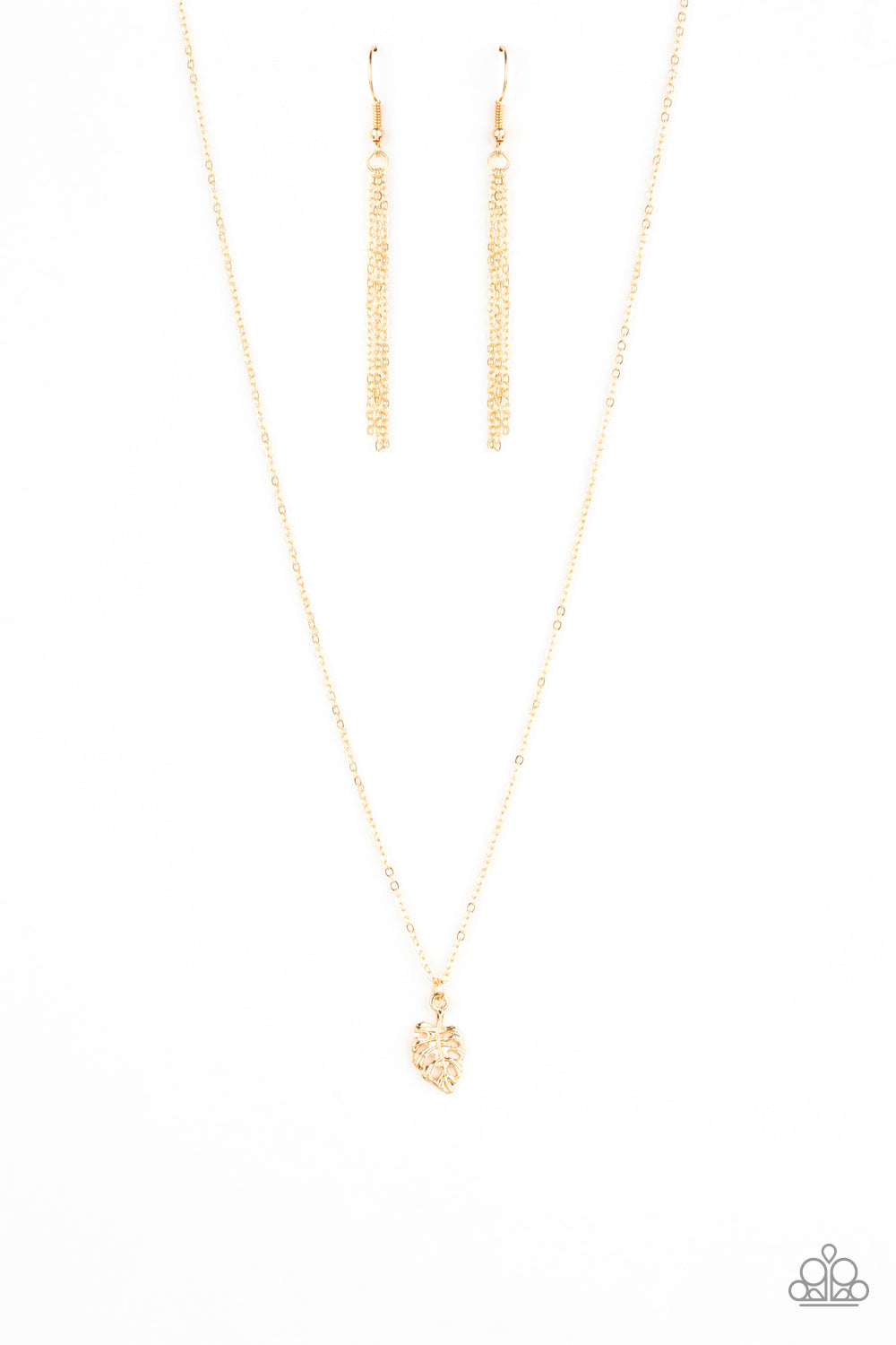 Brushed in a high-sheen shimmer, a dainty gold palm leaf pendant swings from a dainty gold chain below the collar for a seasonal look. Features an adjustable clasp closure.