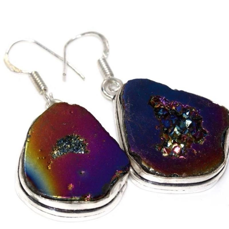 1.8" Titanium Druzy .925 Sterling Silver Overlay Earrings