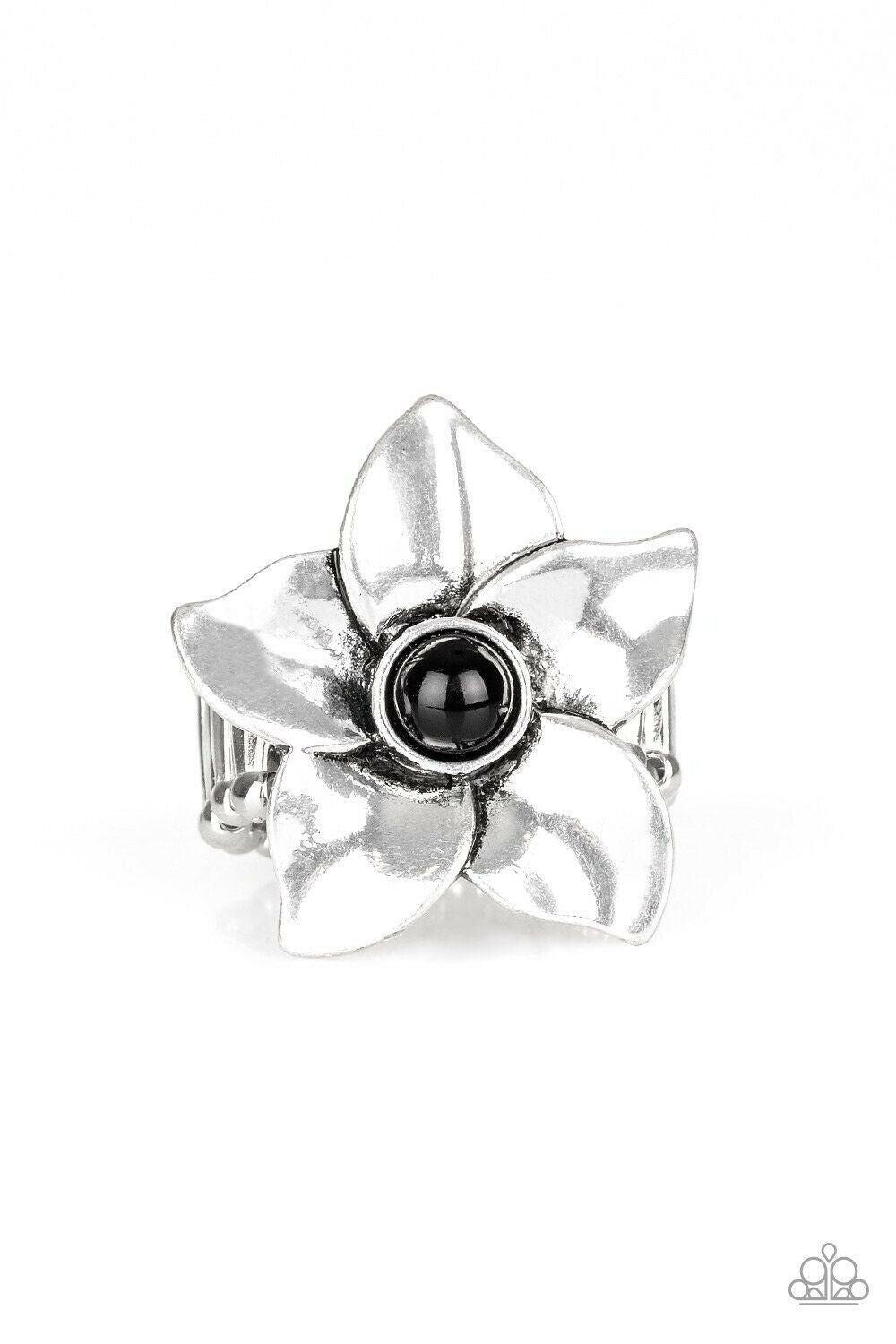 Ask For Flowers - Black Stretchy Ring Paparazzi Accessories Jewelry 3261