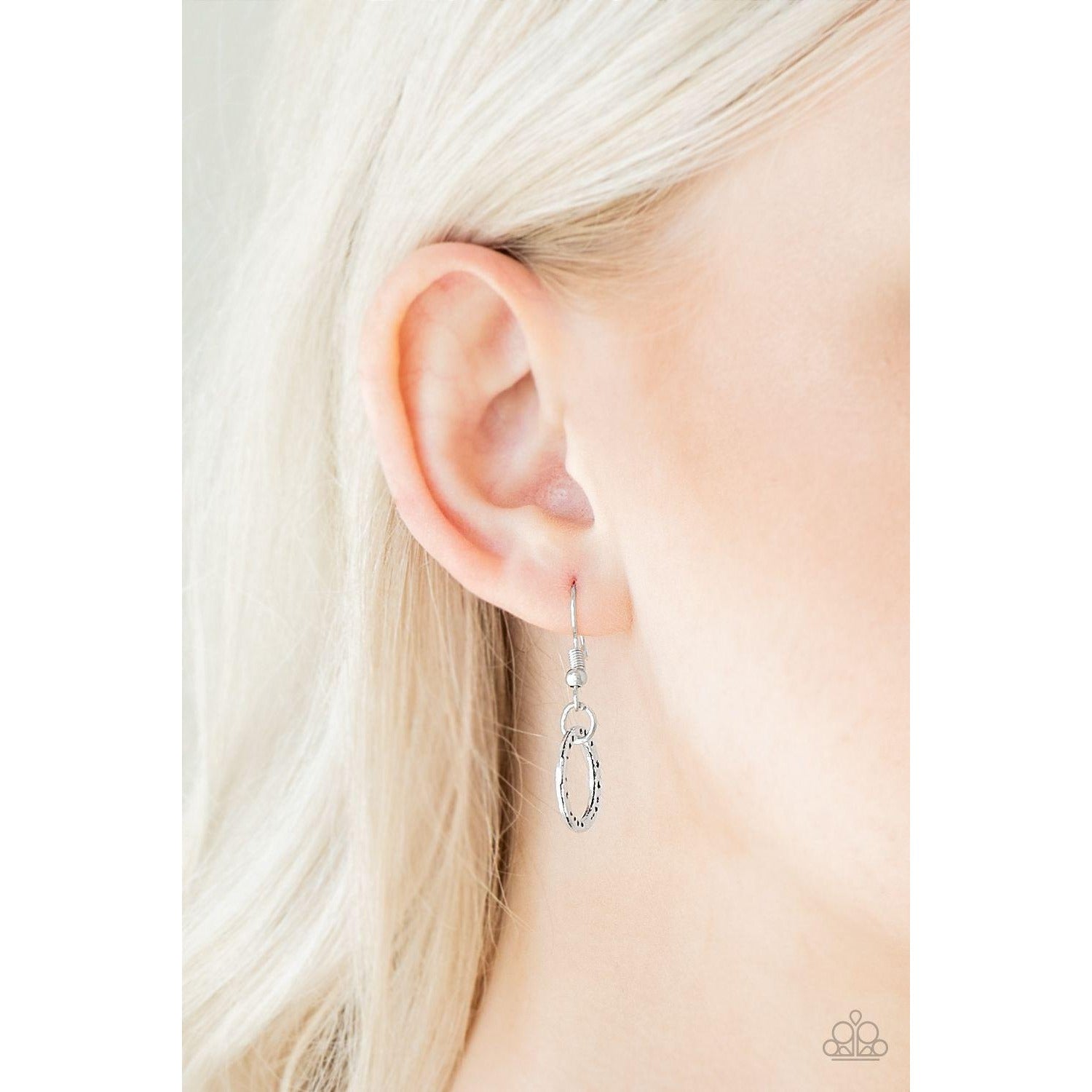 Varying in size, hammered glistening gunmetal and silver hoops link below the collar for a casual look. Features an adjustable clasp closure.
