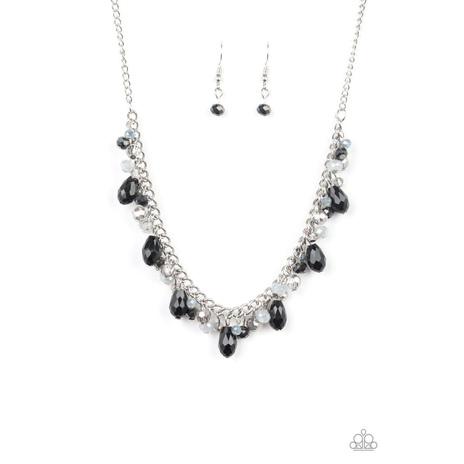 Featuring crystal-like and metallic opaque finishes, mismatched beading swings from a shimmery silver chain, creating a glamorous fringe below the collar. Features an adjustable clasp closure.