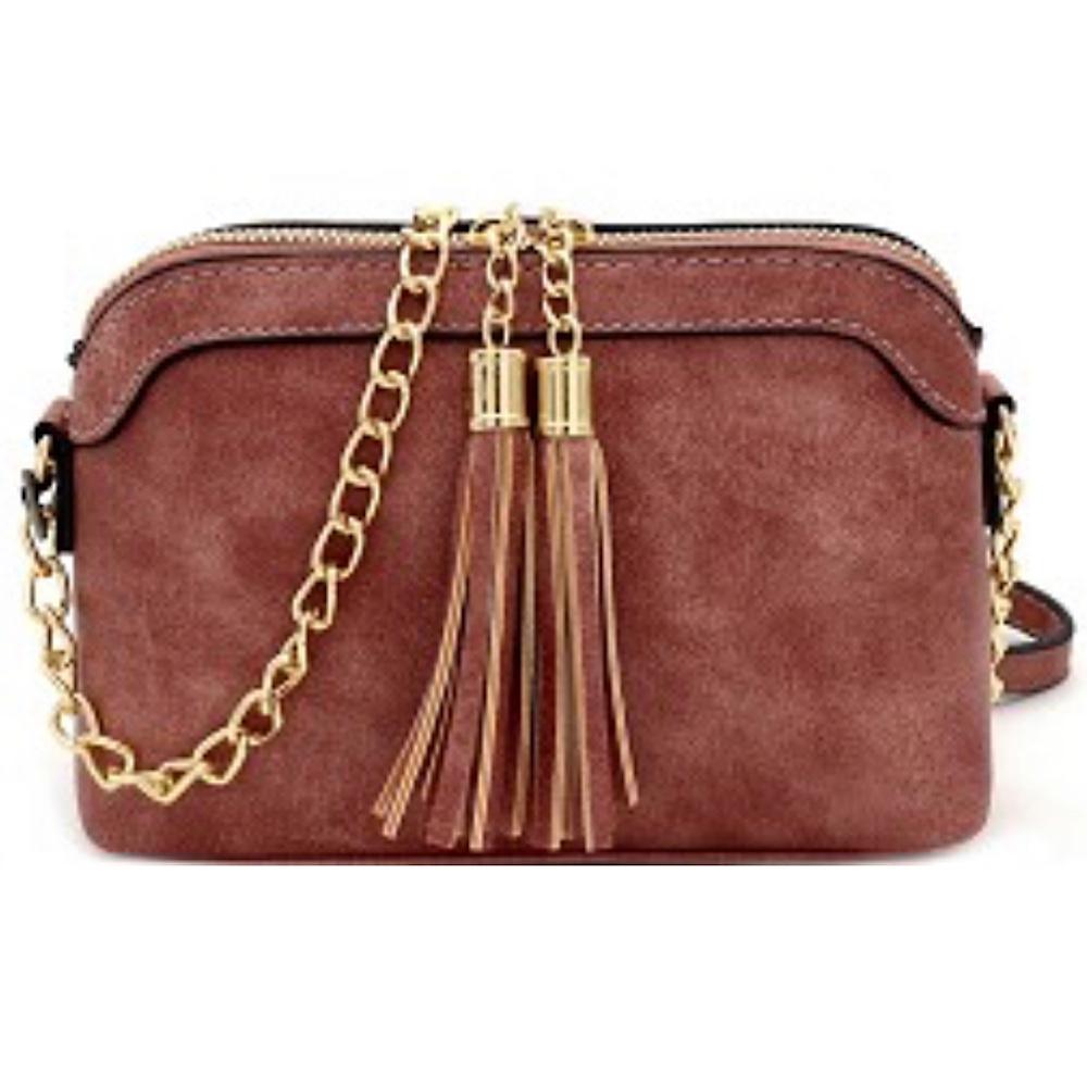 Mauve Double Tassel Accent Chain Cross Body Shoulder Bag