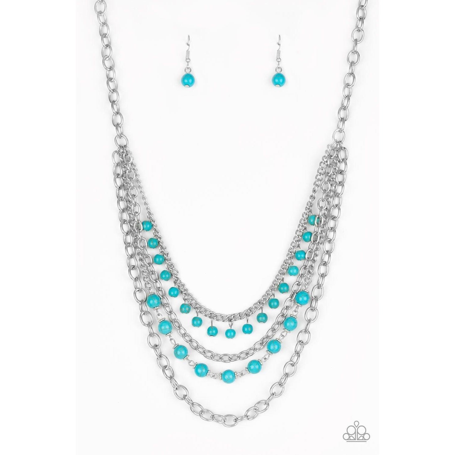Featuring refreshing turquoise stone accents, mismatched silver chains layer below the collar for a seasonal look. Features an adjustable clasp closure.