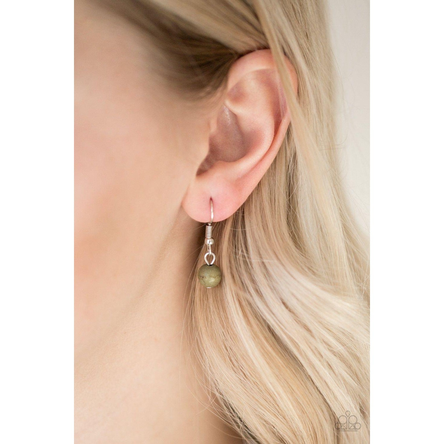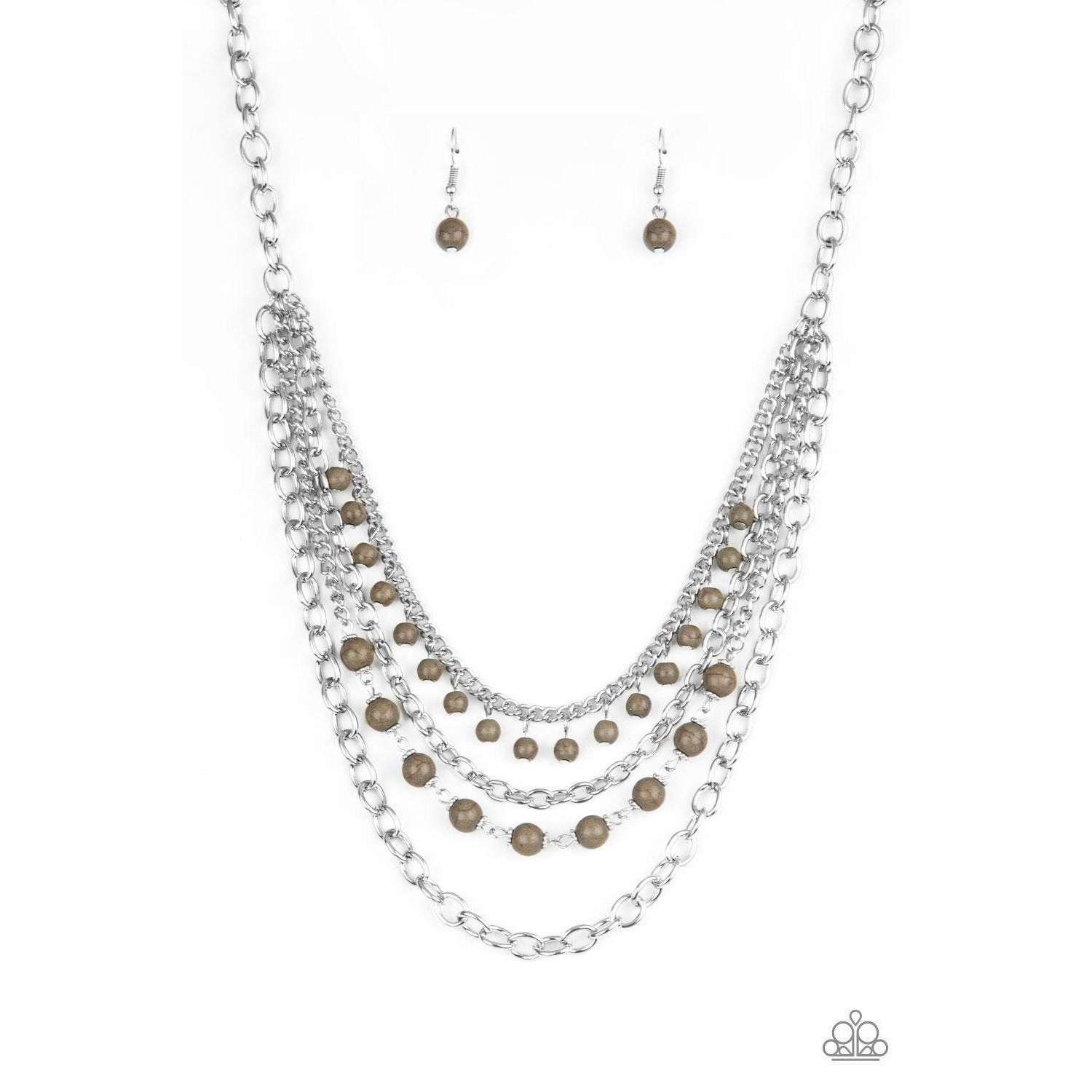 Featuring earthy green stone accents, mismatched silver chains layer below the collar for a seasonal look. Features an adjustable clasp closure.