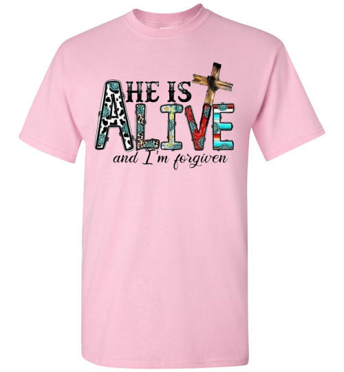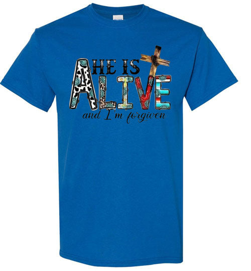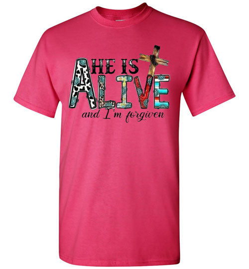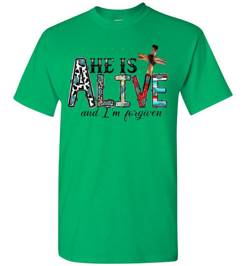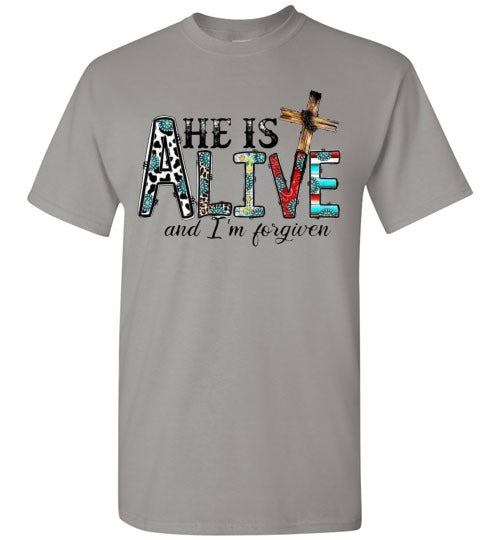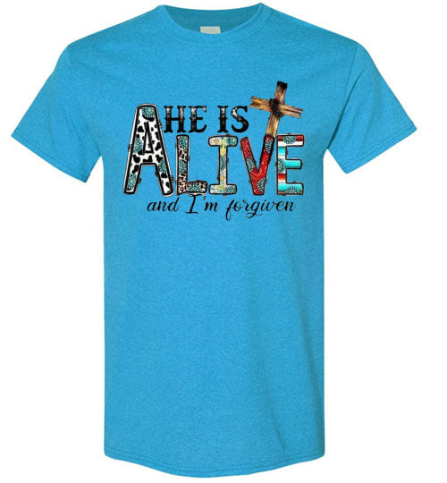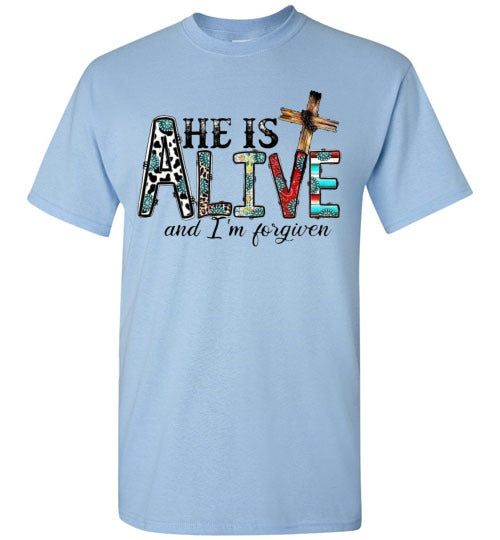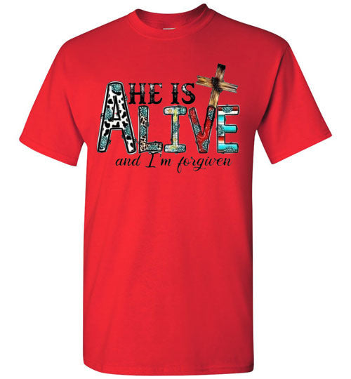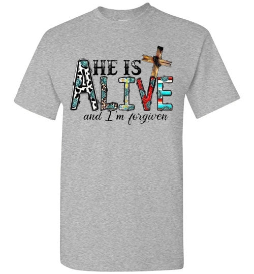 He Is Alive and I am Forgiven Christian Spiritual Graphic Tee Shirt Top