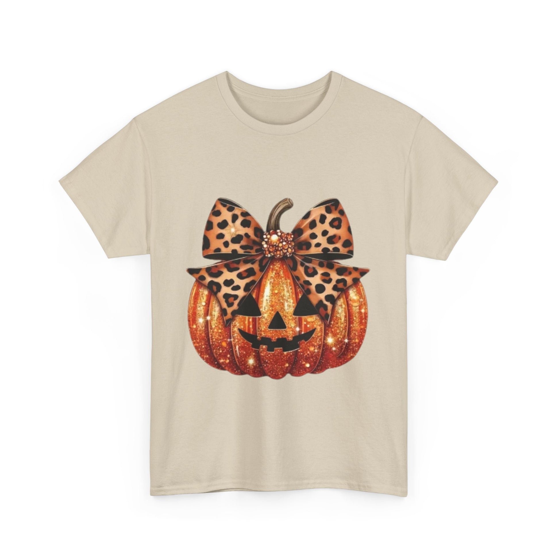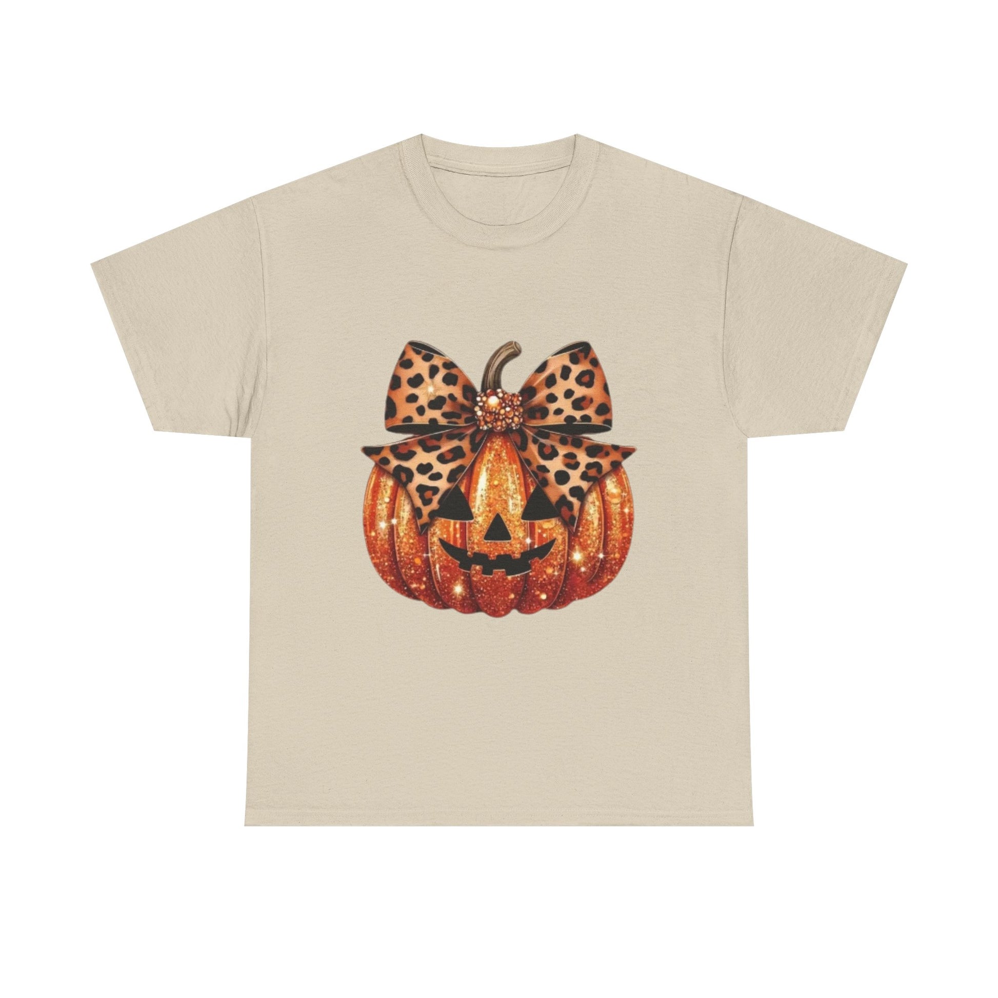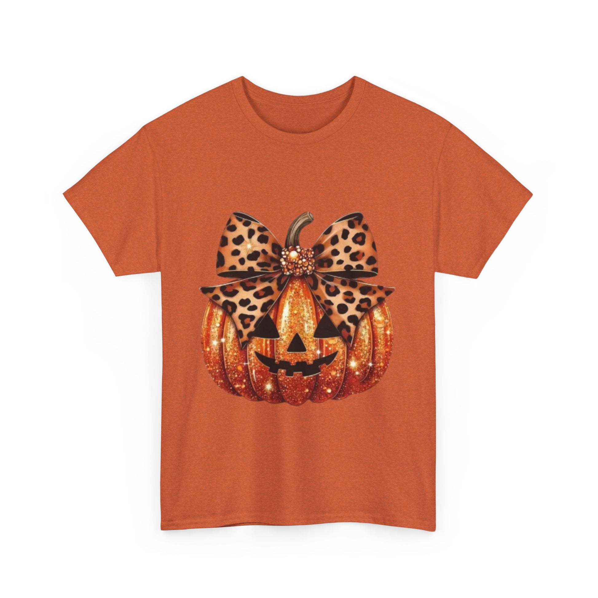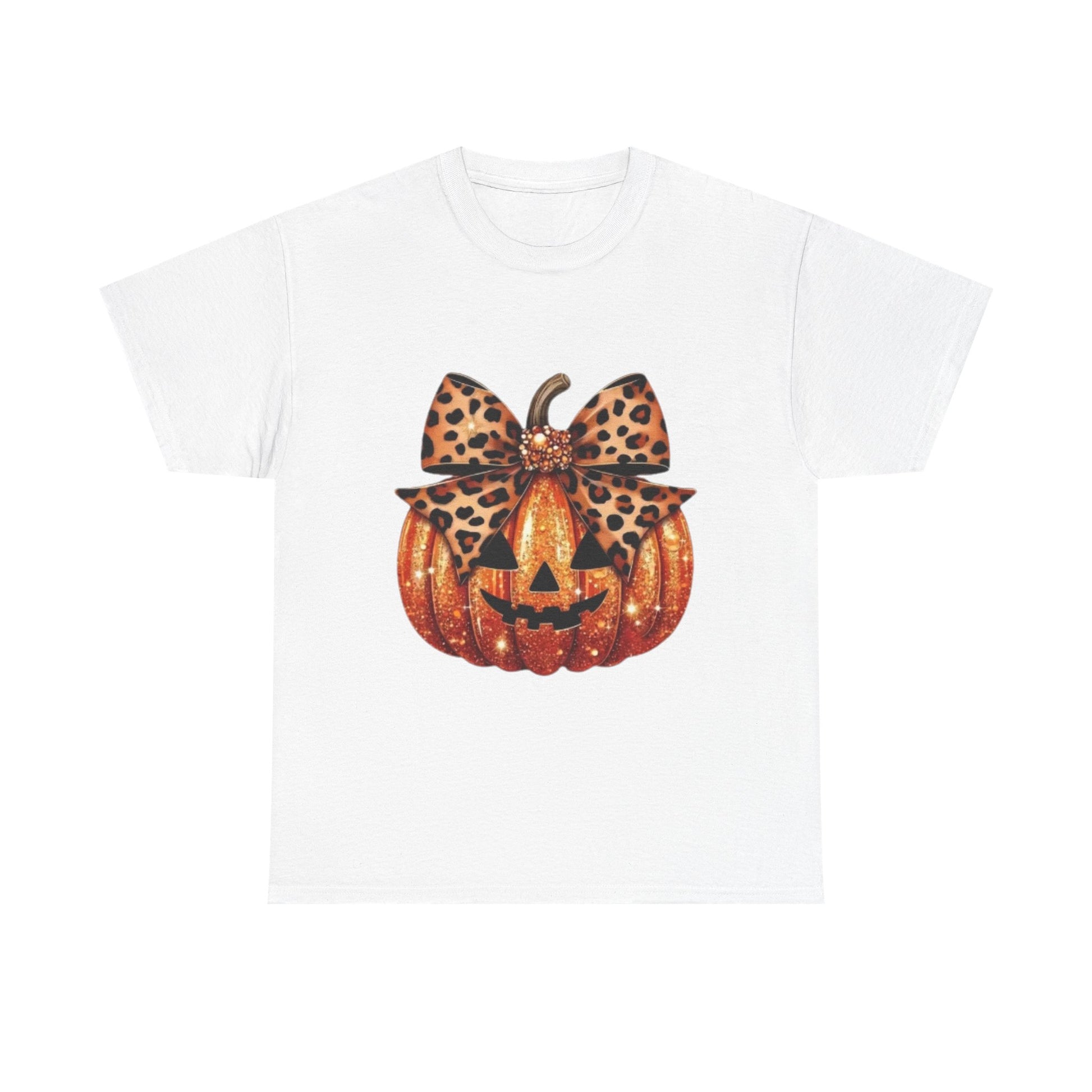 Leopard Bow Pumpkin Tee, Cute Halloween Shirt, Fall Fashion, Unisex Graphic Tee, Autumn Apparel, Pumpkin Lover Gift
