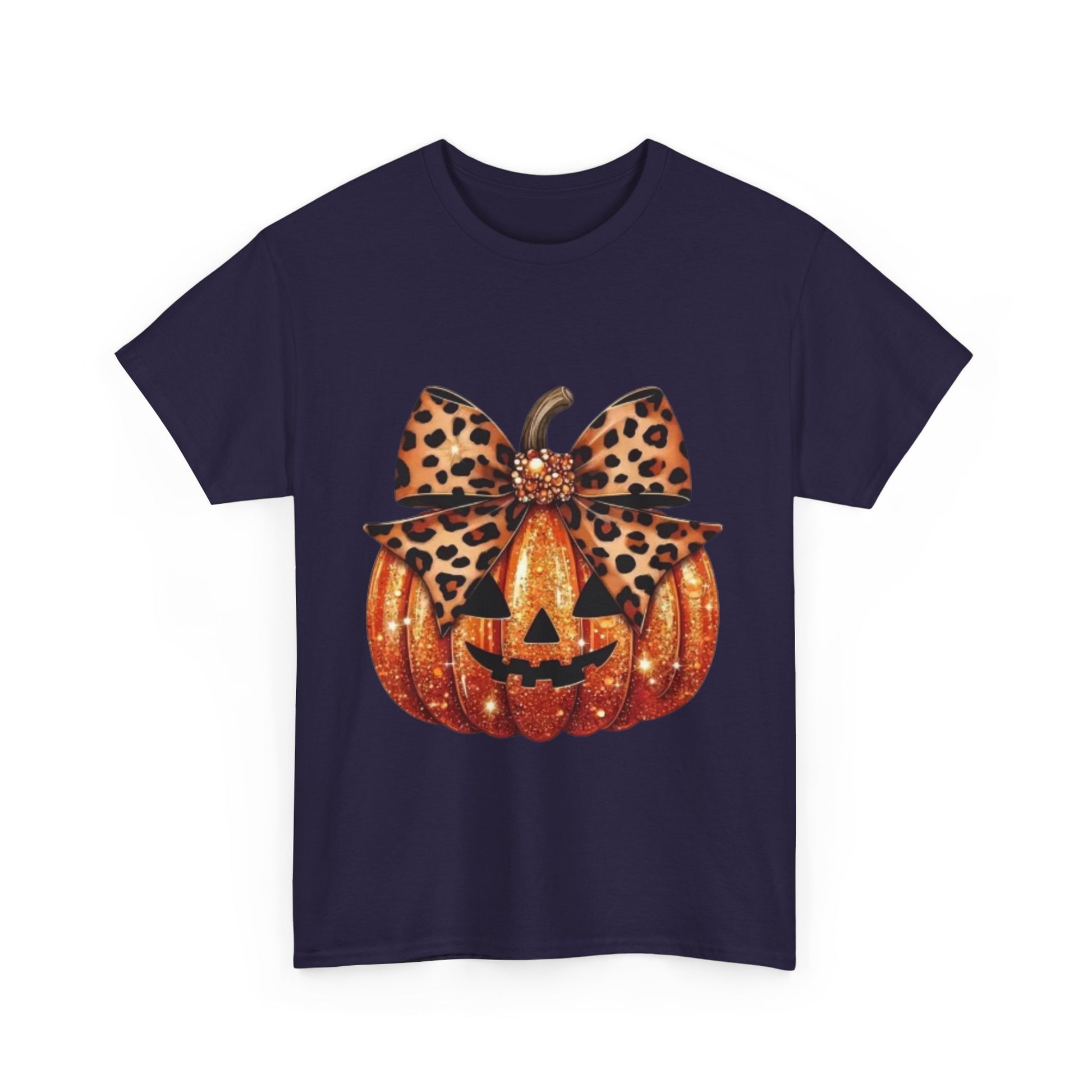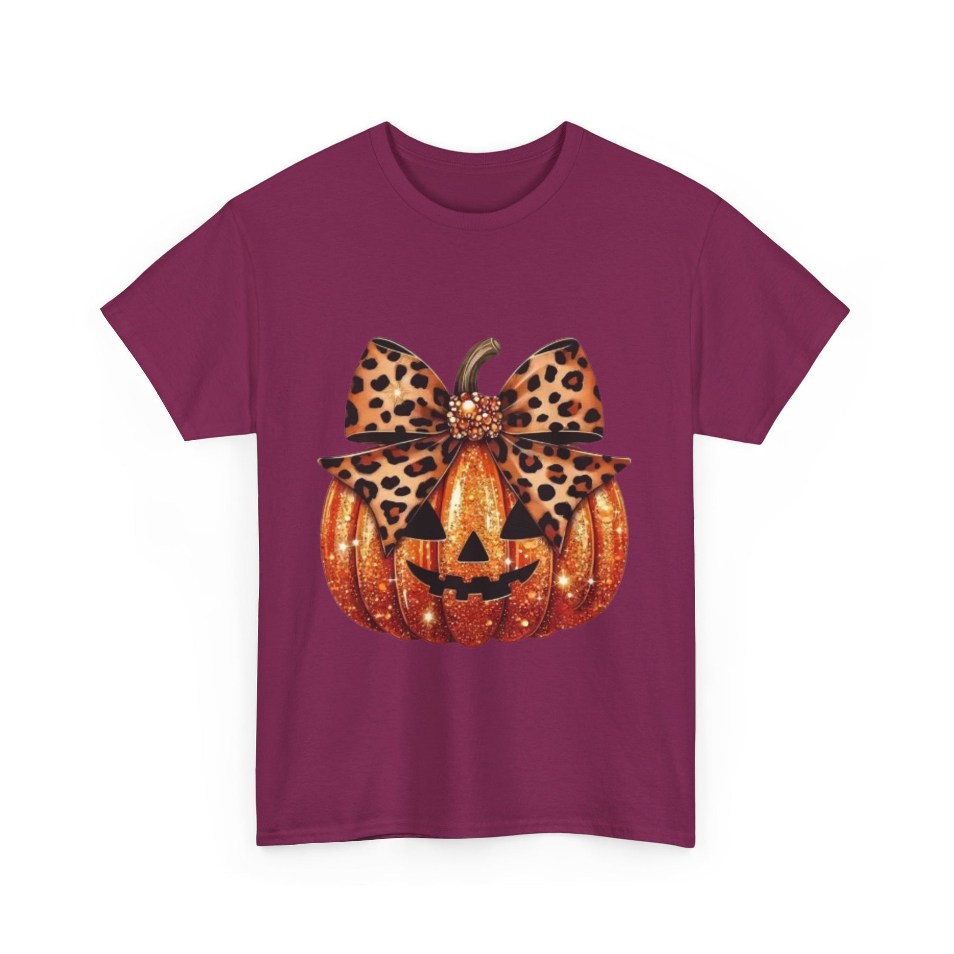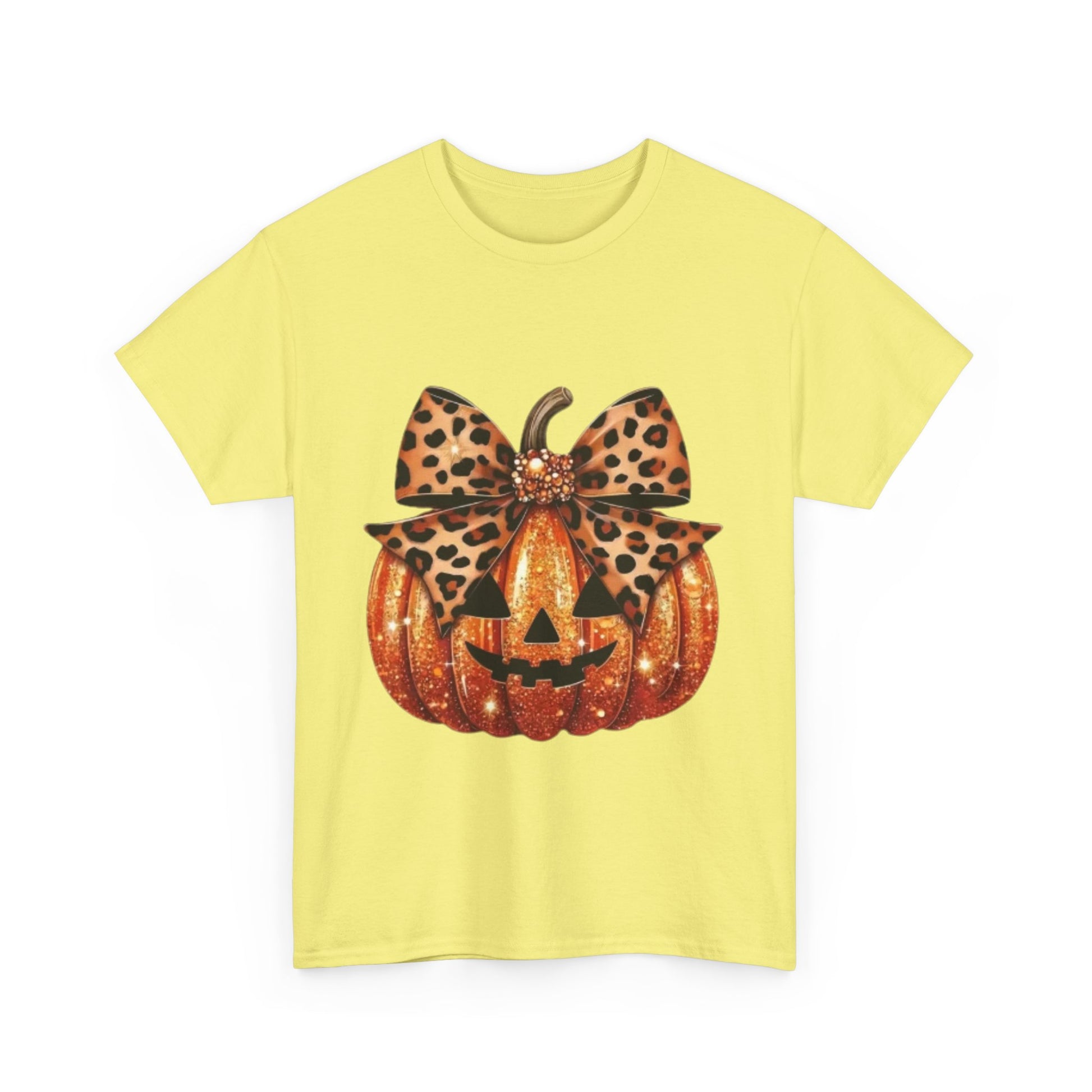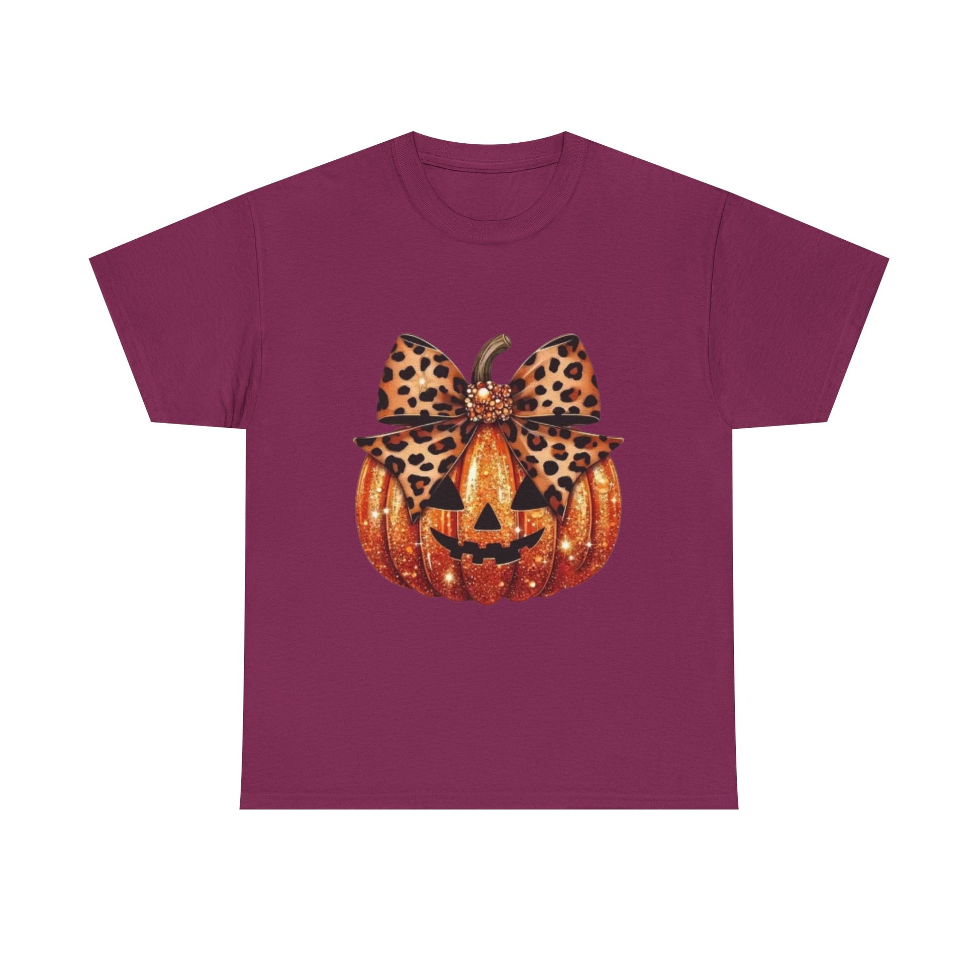 Leopard Bow Pumpkin Tee, Cute Halloween Shirt, Fall Fashion, Unisex Graphic Tee, Autumn Apparel, Pumpkin Lover Gift