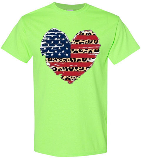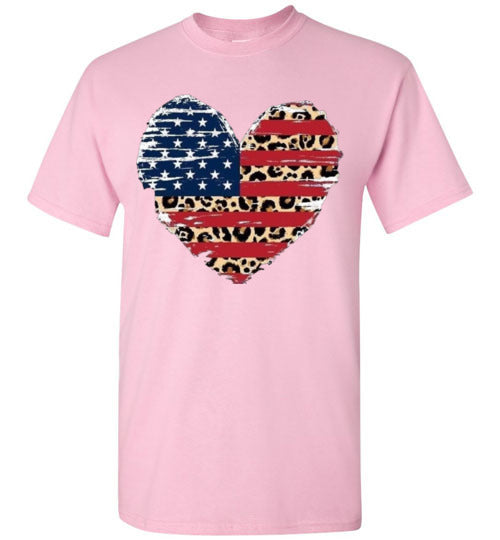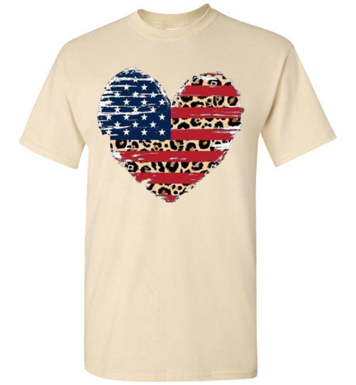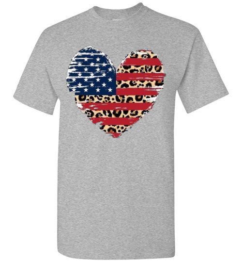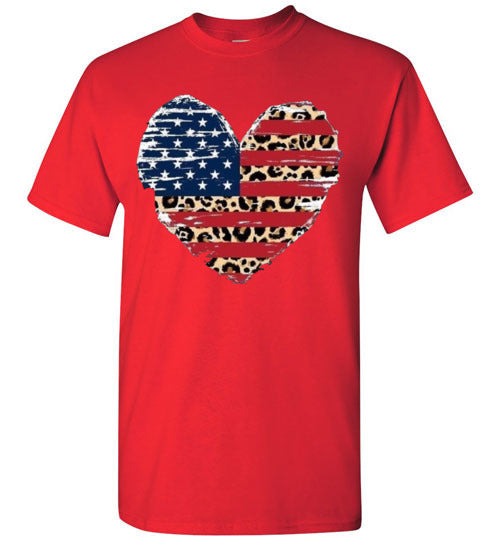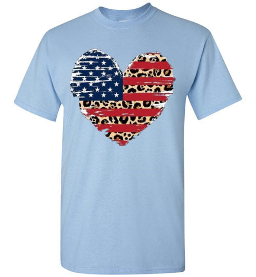 Leopard Heart American Flag Tee Shirt Graphic Top