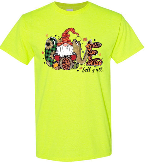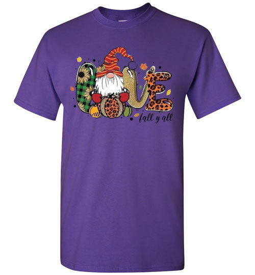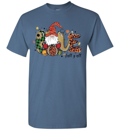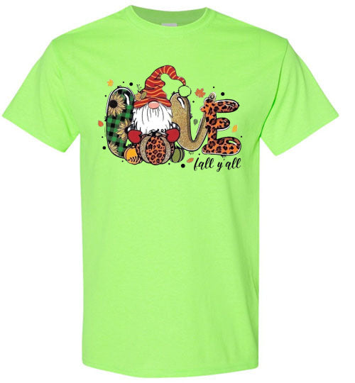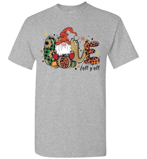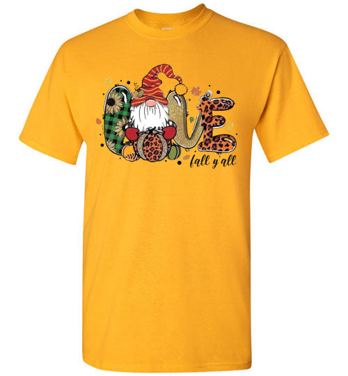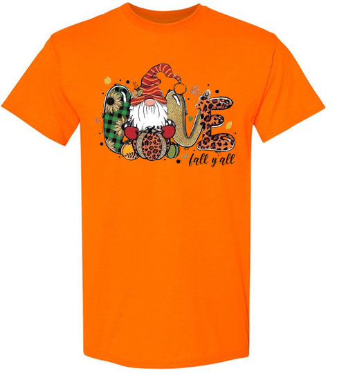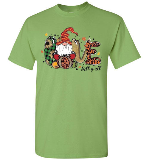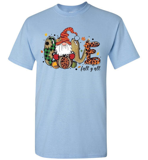 Love Fall Ya'll Gnome Autumn Graphic Tee Shirt top