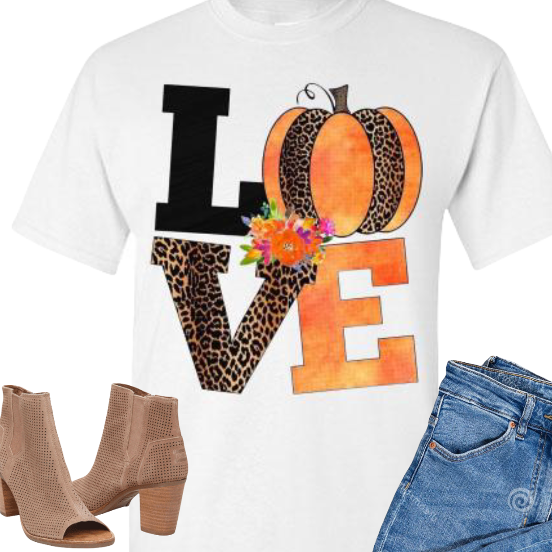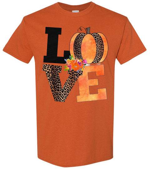 Love Leopard Pumpkin Fall Tee Shirt T-Shirt