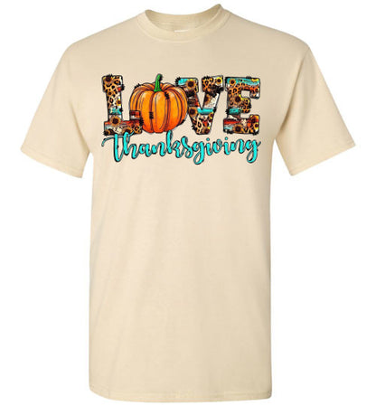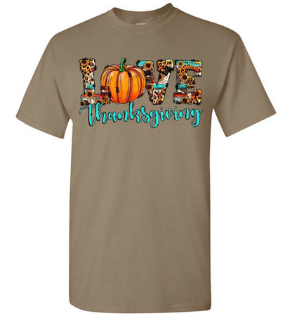 Love Thanksgiving Fall Pumpkin Leopard Tee Shirt Top T-Shirt