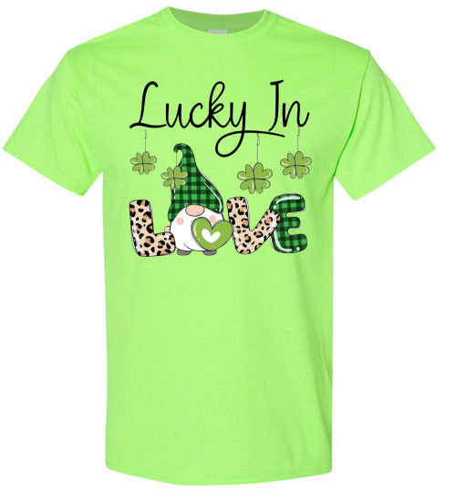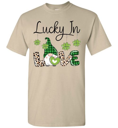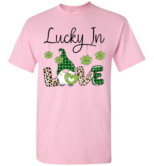 Lucky In Love Irish St Patrick's Day Gnome Graphic Tee Shirt Top T-Shirt