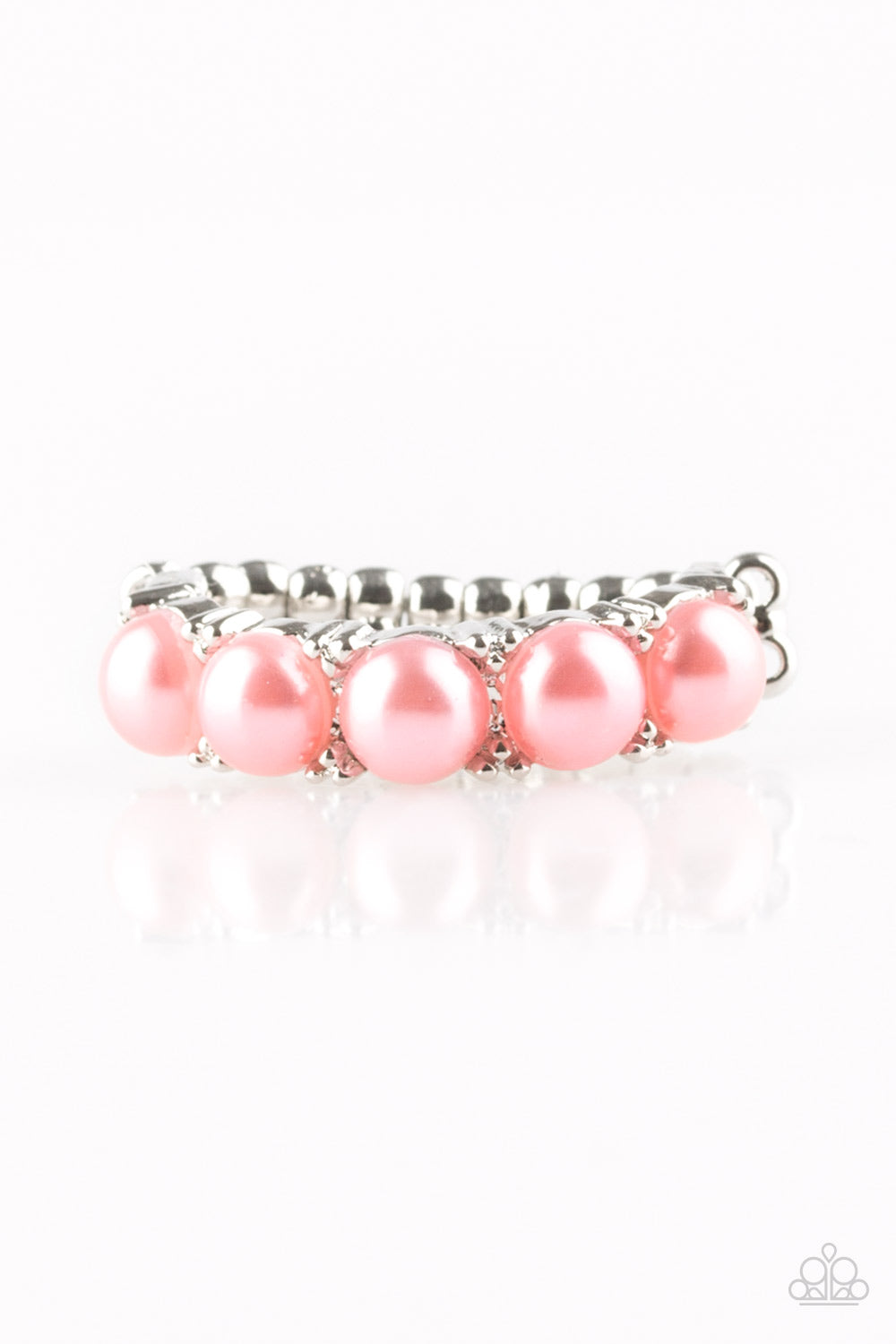 Bubbly coral pearls are encrusted along a dainty silver band for a whimsical look. Features a dainty stretchy band for a flexible fit.
