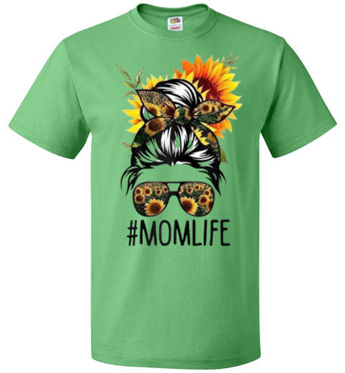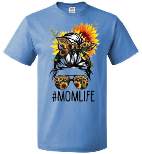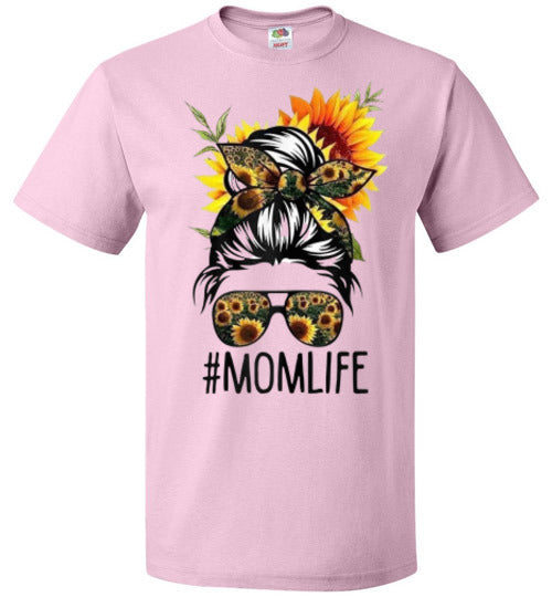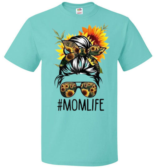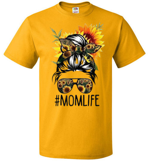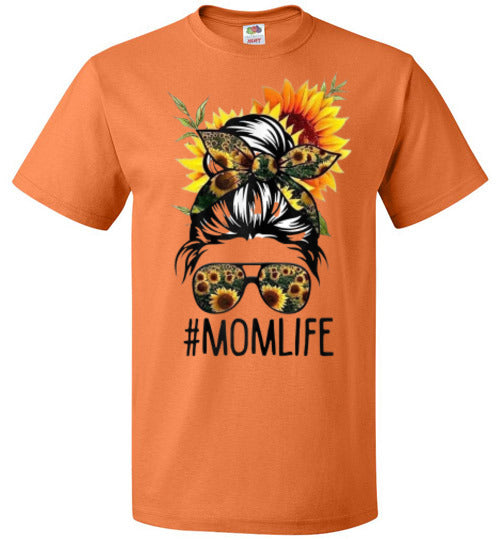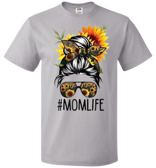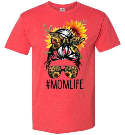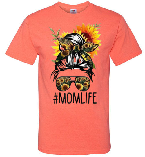 Mom Life Sunflower Fall Messy Hair Bun Graphic Tee Shirt Top