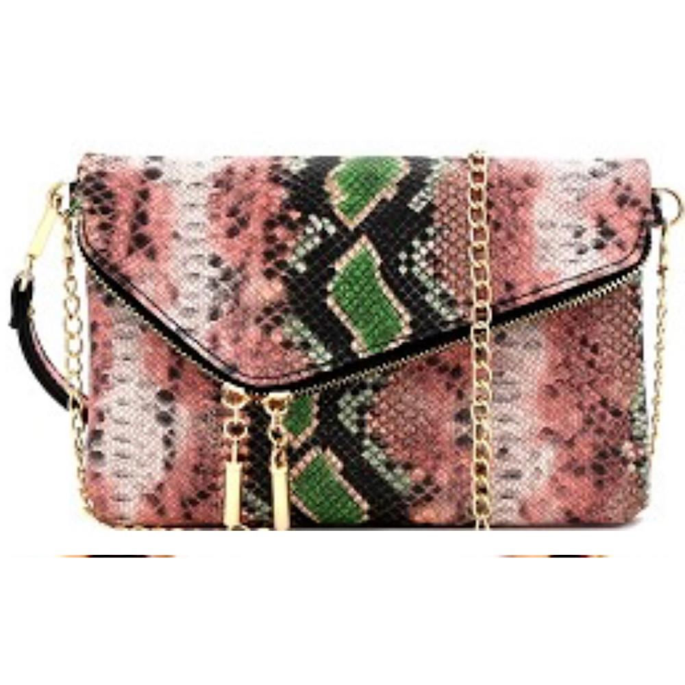 Multi-Color Snake Print Asymmetrical Flap Clutch Shoulder Bag Pink