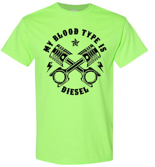 My Blood Type Is Diesel Trucker Graphic Tee Shirt Top