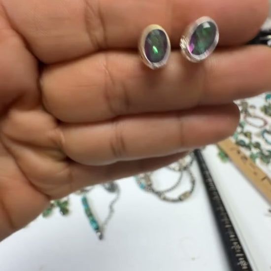 Mystic Topaz .925 Solid Sterling Silver Stud Earrings