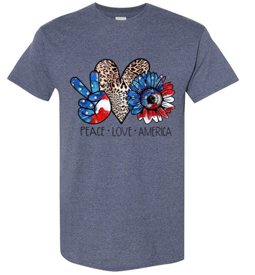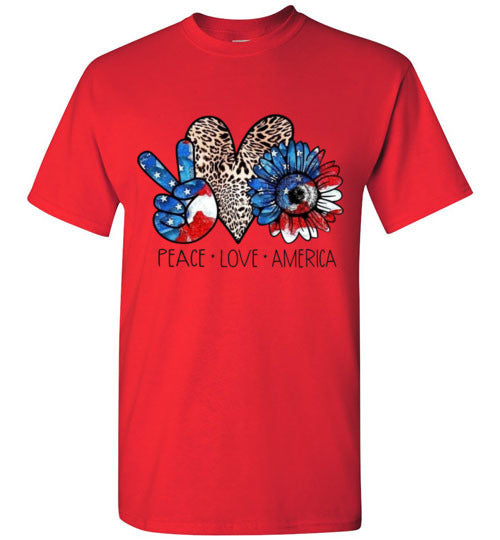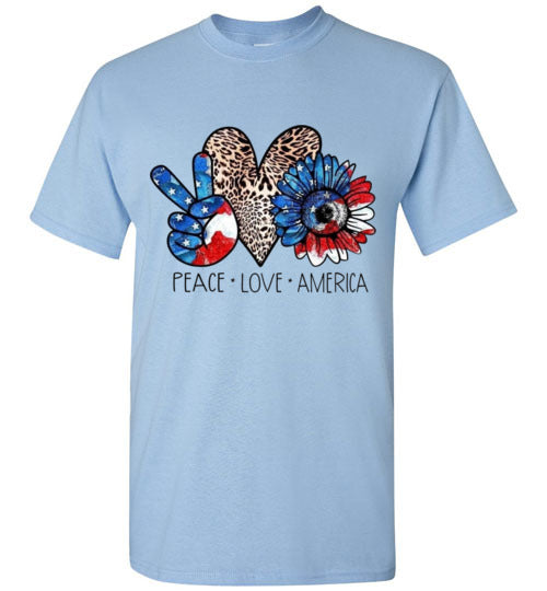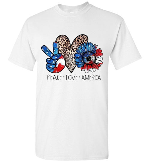 Peace Love America Patriotic American Fourth Of July Graphic Tee Shirt Top