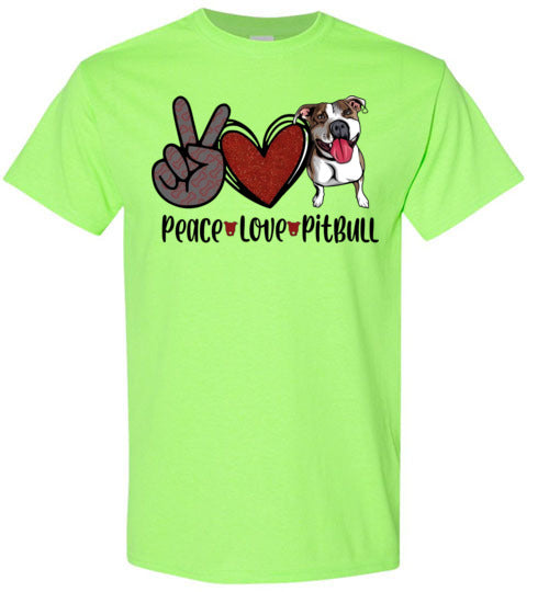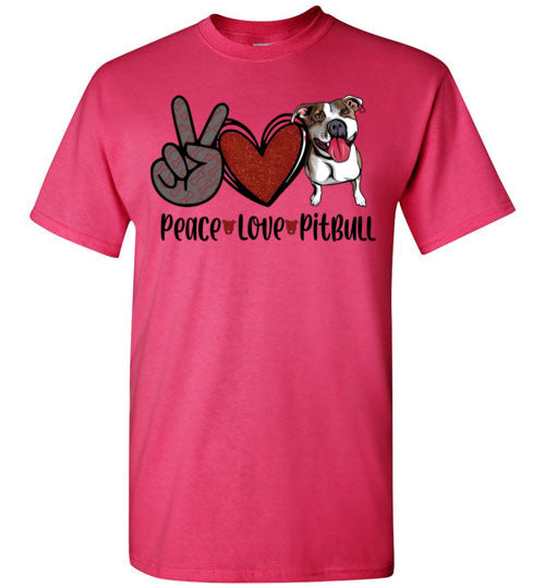 Peace Love Pitbull Dog Tee Shirt Top T-Shirt