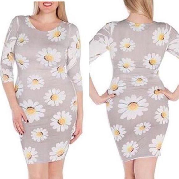 Plus Size Floral Daisy Print Flower Dress 1X 2X
