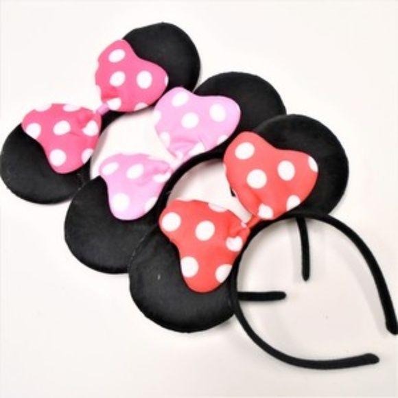 Popular Black Mouse Ear Headbands w/ Polka Dot Bow
