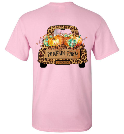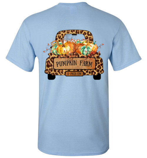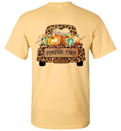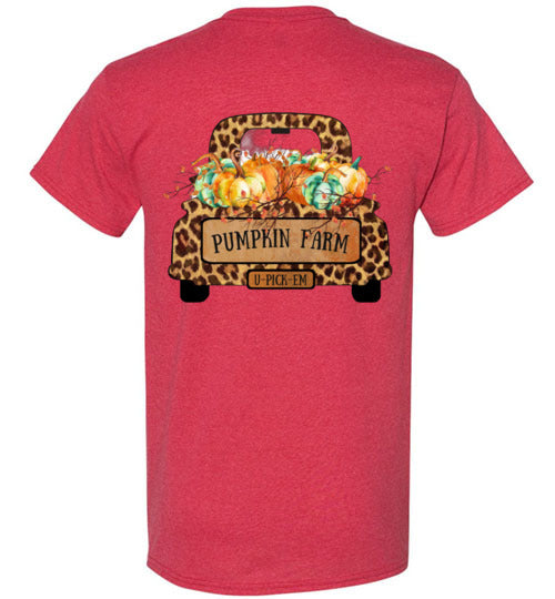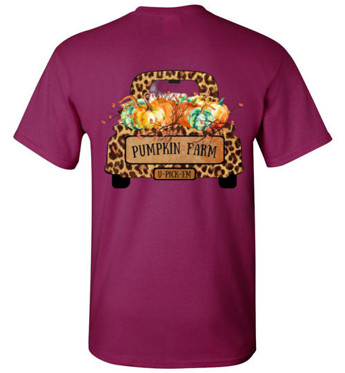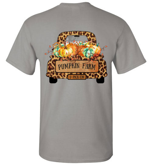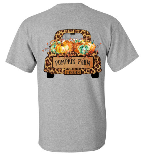 Pumpkin Farm Leopard Print Truck Graphic Tee Shirt Top T-Shirt