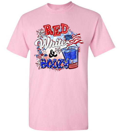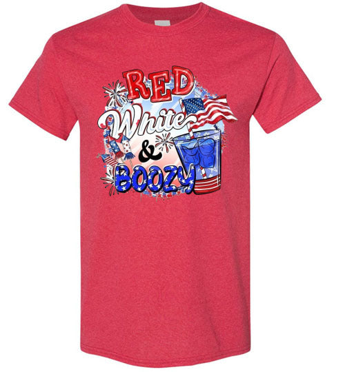 Red White & Boozy Funny Patriotic American USA 4th Of July Tee Shirt Graphic Top