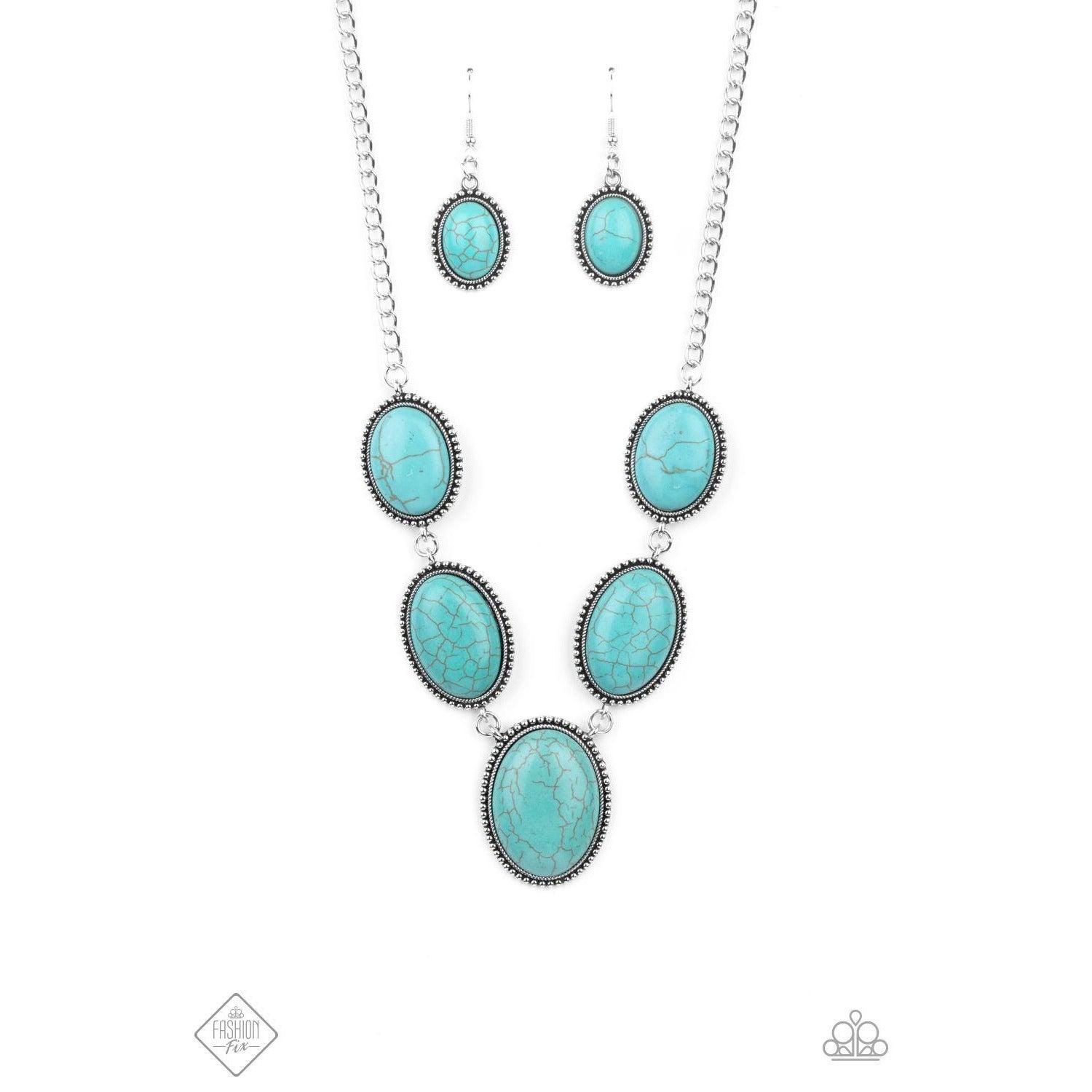 Bordered in rustic silver studded frames, an earthy collection of oversized turquoise stones boldly links below the collar, creating a timeless Southwestern staple. Features an adjustable clasp closure.