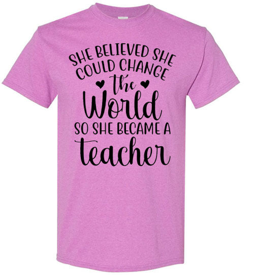 She Believe She Could Change The World Teacher Graphic Top Shirt
