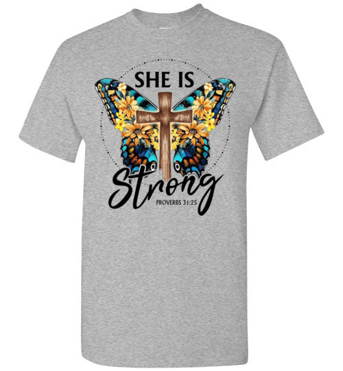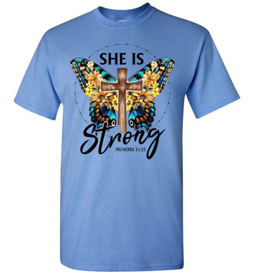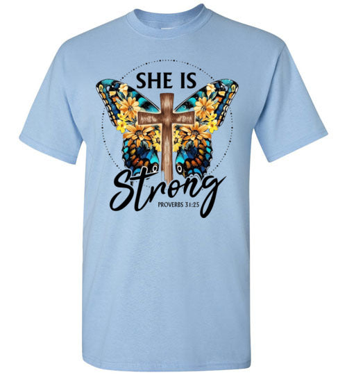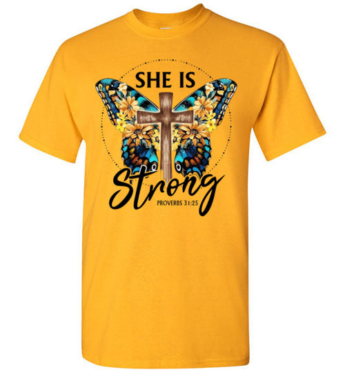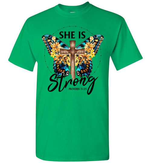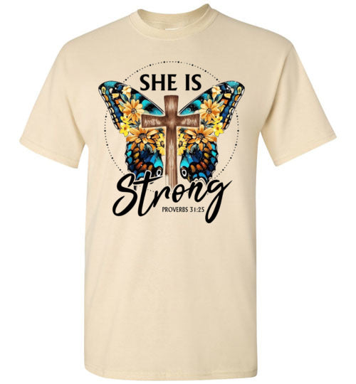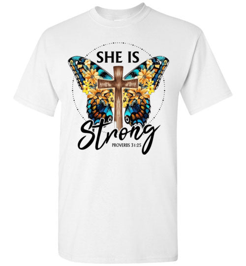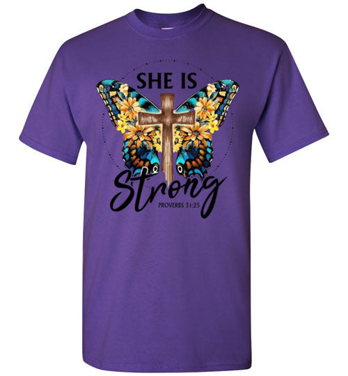 She Is Strong Butterfly Cross Christian Tee Shirt Top T-Shirt