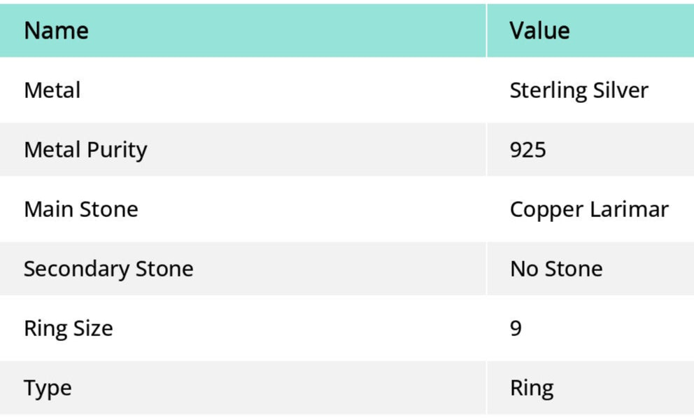 Size 9 Copper Larimar Gemstone 925 Sterling Silver Jewelry Ring