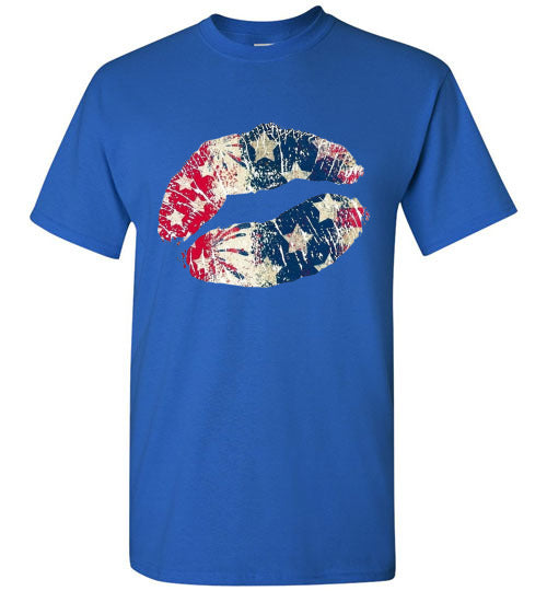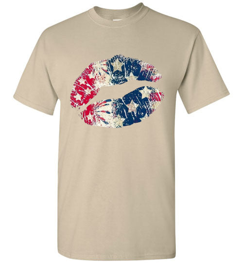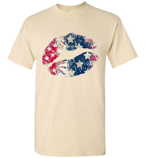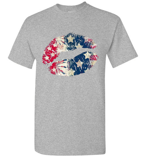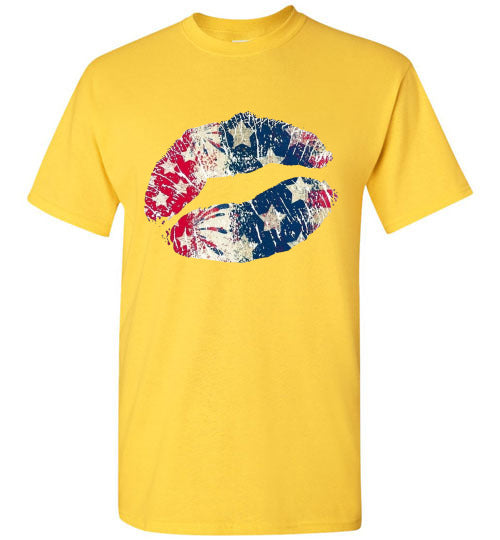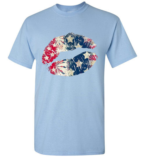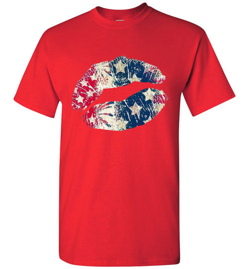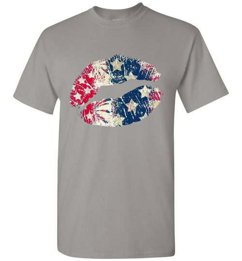 Star Bangles Banner Kiss Lips Patriotic Americana Graphic Tee Shirt Top T-Shirt
