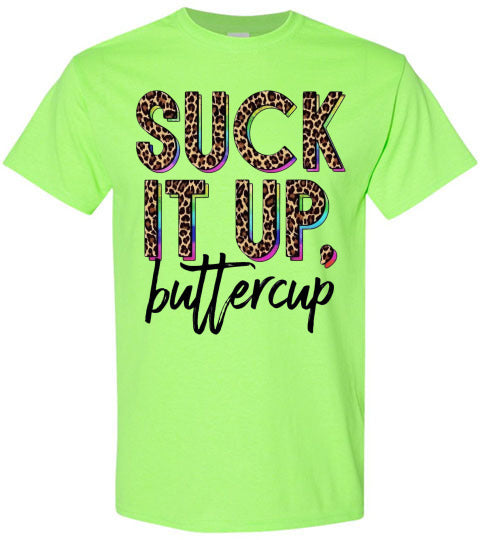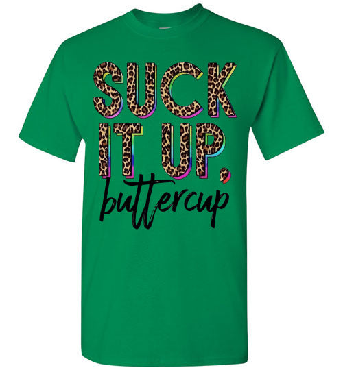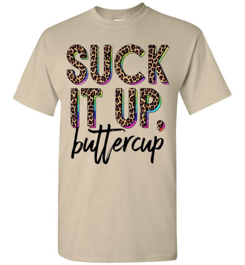 Suck It Up Buttercup Leopard Print Funny Graphic Tee Shirt Top