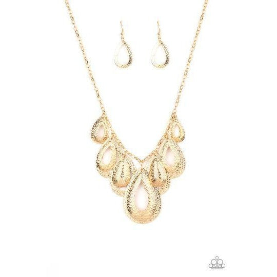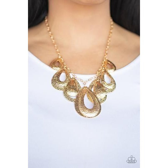 Teardrop Tempest - Gold - Hammered Textured Teardrops - Necklace
