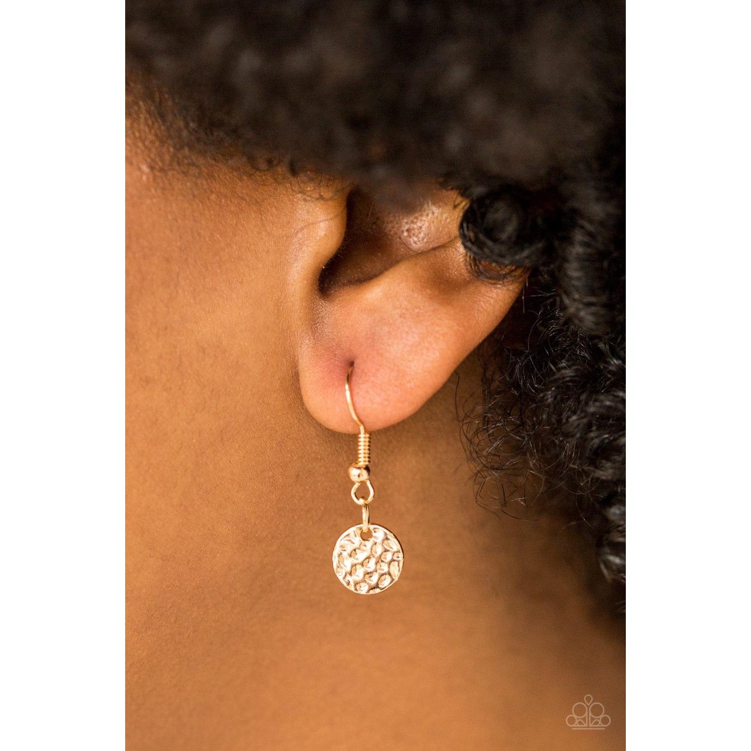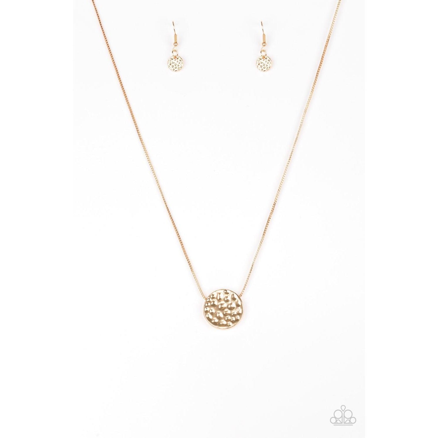 Delicately hammered in shimmery detail, a glistening gold pendant slides along a dainty gold box-chain below the collar for a bold look. Features an adjustable clasp closure.
