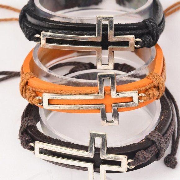 Unisex Leather Adjustable Drawstring Cross Bracelet 27043