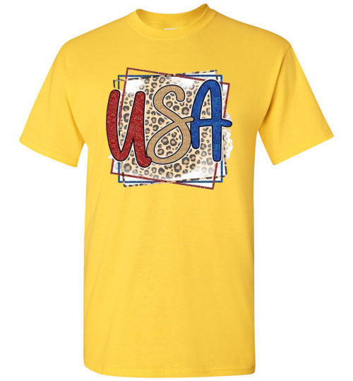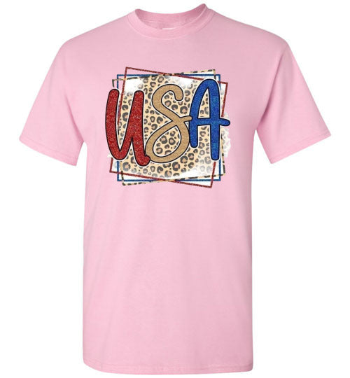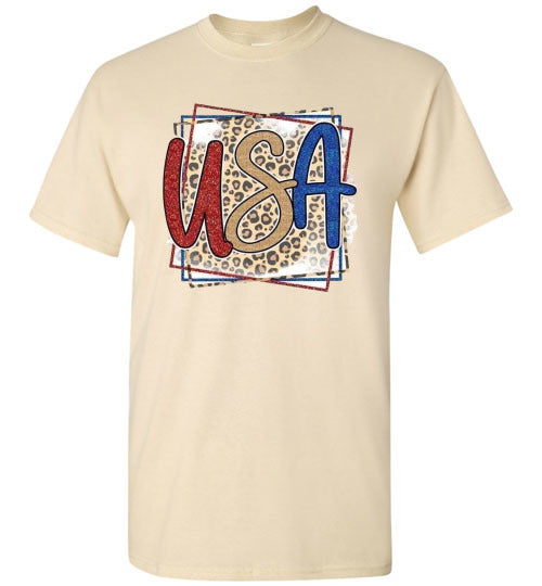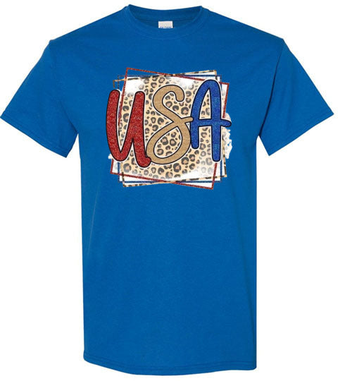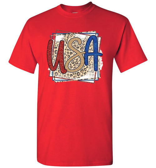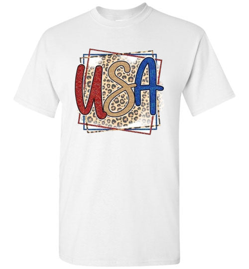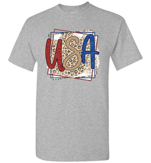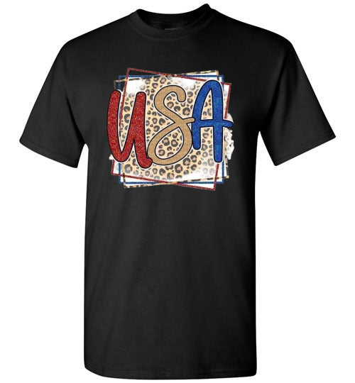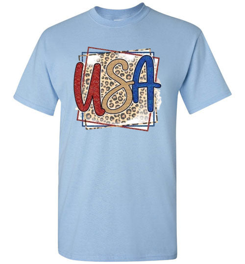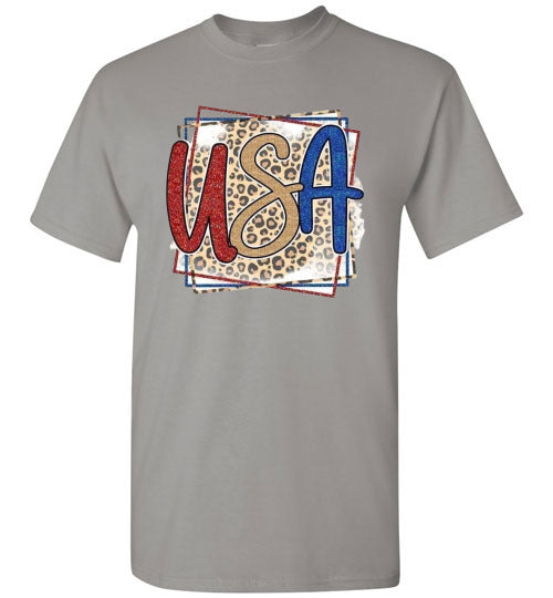 USA Leopard Print Patriotic Americana Graphic Tee Shirt top T-Shirt
